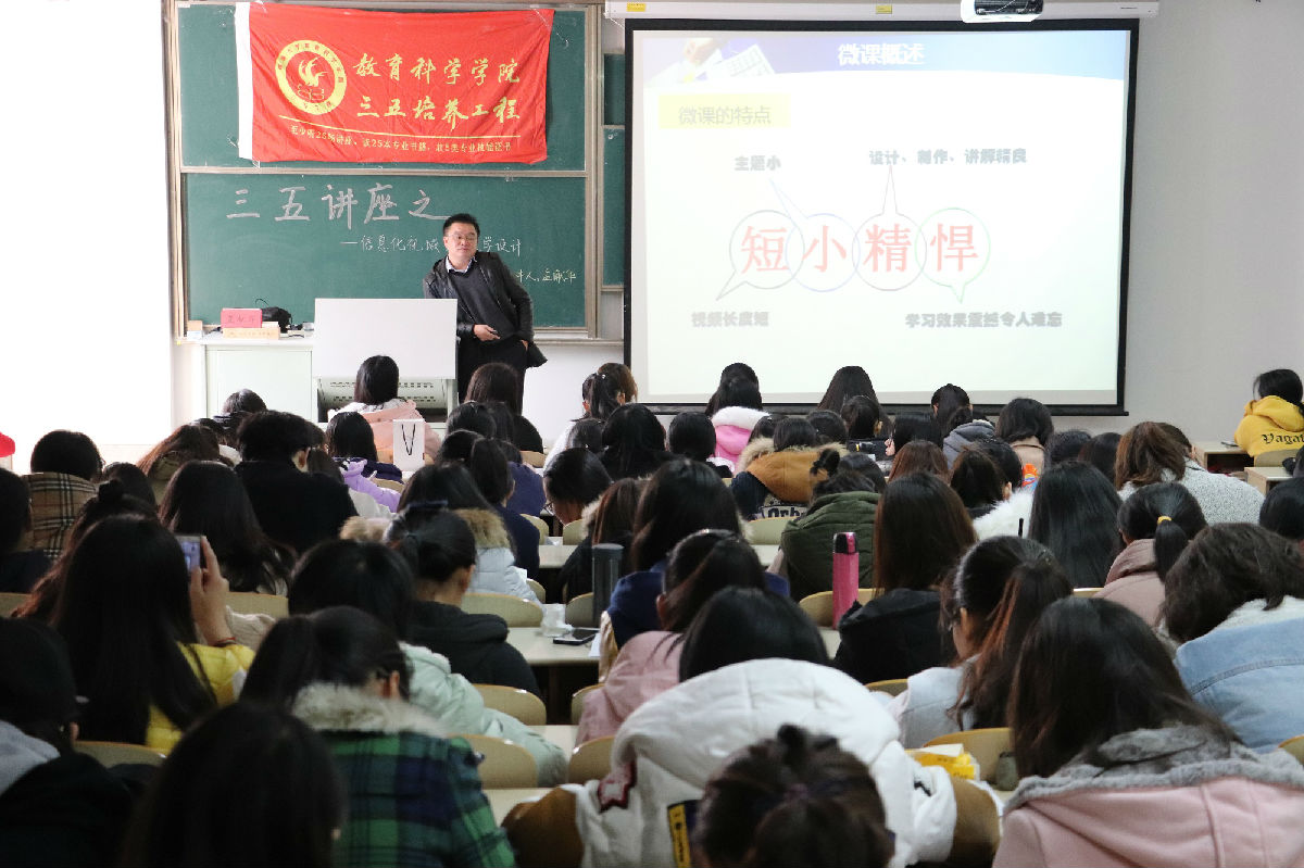 11月22日下午,教育科学学院在8号楼203举办三五讲座,孟献华老师做题为“现代化视域的教学设计”的报告,全院近200名学生到场参与。