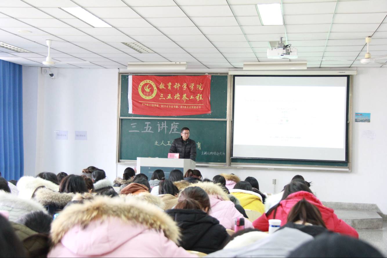 12月20日,我院主办的三五讲座之“人工智能与教育”在8号楼308室顺利举行,此次讲座邀请到杨晓新老师主讲,全院近两百名学生到场聆听。