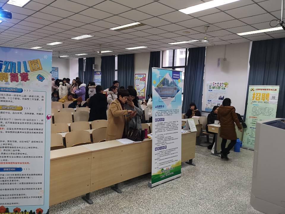 1月7日下午,教育科学学院2019届毕业生专场招聘会在主校区8号、9号教学楼多个教室举办,吸引了上海市崇明教育局、太仓教育局带领辖区学校组团前来招聘,其中上海市崇明教育局带领崇明区域24家学校负责人参加招聘会进行现场面试。另有南通诺德安达双语学校、吉的堡幼儿园等12家单位前来现场招聘,为我校本科师范毕业生提供了约300多个就业岗位,为研究生同学提供了上百个就业岗位。以教科院毕业生为主体的400多名毕业生参加了招聘活动。