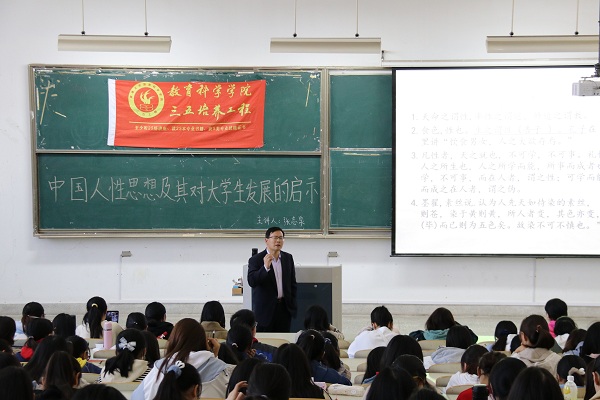 11月4日下午,南通千亿qy88国际官网入口于9号楼302教室举办以“中国人性思想及其对大学生发展的启示”为主题的三五讲座。此次讲座由张志泉老师主讲,教科院280余名学生到场聆听。