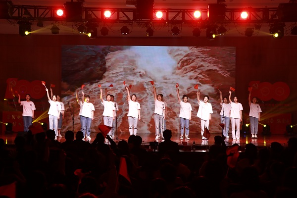 晚会在师生红歌合唱《祖国不会忘记》中拉开帷幕。由教育科学学院全体领导成员以及师生代表组成的合唱团用歌声向党的生日献上最真挚的祝福,用歌声赞扬了在祖国大地默默耕耘、无私奉献的人们。开场舞《一起跳舞吧》充分彰显了教科学子的蓬勃朝气。晚会分为三个篇章次第进行。第一篇章“青春拂晓,梦想起航”在红歌串烧中徐徐展开,百年征程书写光辉党史,筚路蓝缕绘就中华盛世。一首首经典红歌的背后是对老一辈同志峥嵘岁月的追忆,亦是对新时代少年风发意气的展望。现代舞《花枪》将国风元素融入新时代的鼓点,用舞姿演绎出巾帼不让须眉的气概。百年亦是风华正茂,诗朗诵《少年中国说》以饱满激昂的热情,铿锵有力的语调传递出少年复兴中华的坚定理想信念。
