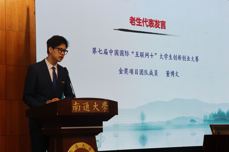 在大学期间如何能够成为最好的自己?典礼现场,学院邀请在第七届中国国际“互联网+”大学生创新创业大赛获得金奖的“派斯盾‘鞘翅甲’仿生纳米自洁涂层”研究团队中我院的两名成员元淑芬、董博文登台亮相。元淑芬同学学习出众,堪称“全能学霸”;董博文同学能力出众,堪称“演讲达人”,两位同学为新生群体带来榜样的力量。董博文作为老生代表分享了他参加“互联网+”大学生创新创业大赛的艰辛的备赛经历和人生感悟,他认为,努力是最好的答案,拼搏的汗水总是在熠熠生辉,人生的路途是漫长的试炼与成长。