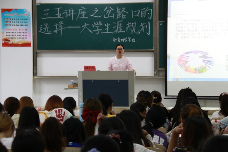 2021年6月3日,南通千亿qy88国际官网入口在主校区8号教学楼203教室成功举办了以“岔路口的选择——大学生涯规划”为主题的三五讲座。此次讲座由郑月红老师主讲,小学教育师范201班、教育技术专业191、192班、小学教育语文(定向)191班的学生参加了本次讲座。