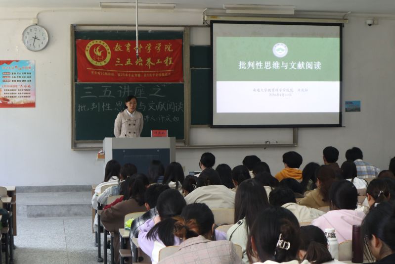 4月10日下午,我院在2号楼109教室举办以“批判性思维与文献阅读”为主题的三五讲座,讲座由许庆如老师主讲,我院150余名学生参加了讲座。