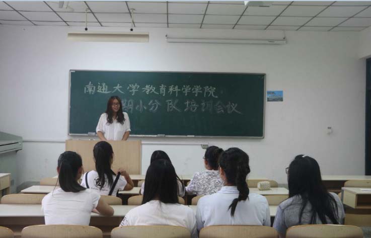 会议上,朱燕同学就“3-6岁农村幼儿手工活动现状调查”这一调研课题的内容和方法进行了介绍和阐述,并动员大家积极主动地走进农村幼儿园和农村家庭进行调研,确保调研结果的真实性和可靠性。同时,还针对调研工作的时间安排和任务分配进行了说明,并多次强调安全问题。最后,小分队的指导老师陶金玲老师与小分队队员们一起在南通大学图书馆前合照,宣布小分队活动正式开始。