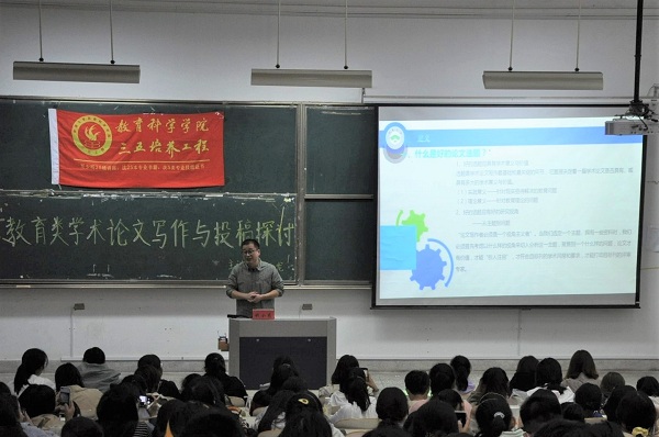 10月28日下午,南通千亿qy88国际官网入口于9号楼302教室举办以“教育类学术论文写作与投稿探讨”为主题的三五讲座。此次讲座由钱小龙老师主讲,教科院280余名学生到场聆听。