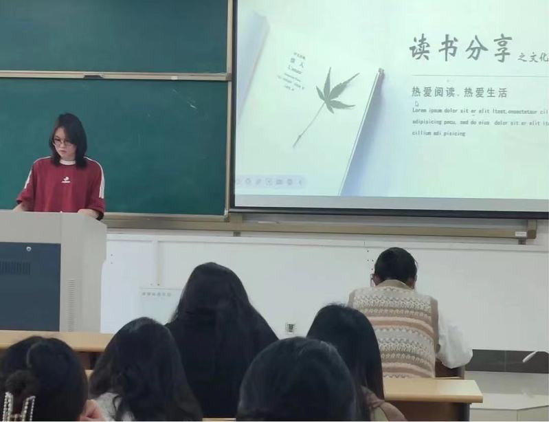 4月24日,我院于38号教学楼105教室开展了“励志阅读,向上生长”读书分享会暨学风建设月“勤学善思求精进,提质赋能促成才”主题活动。本次活动在反思总结以往活动的基础上,开拓创新多样形式,多位学生利用图片、词句、感悟等方式分享并推荐书籍,总结读书成果,摘录经典句子,通过朗读、提问等方式进行互动,大大提高了同学们参与的积极性。