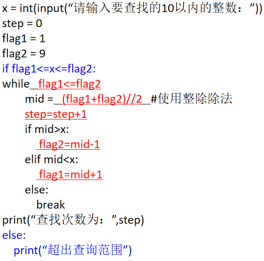 若所查找的数据超出范围该怎么办?完善程序